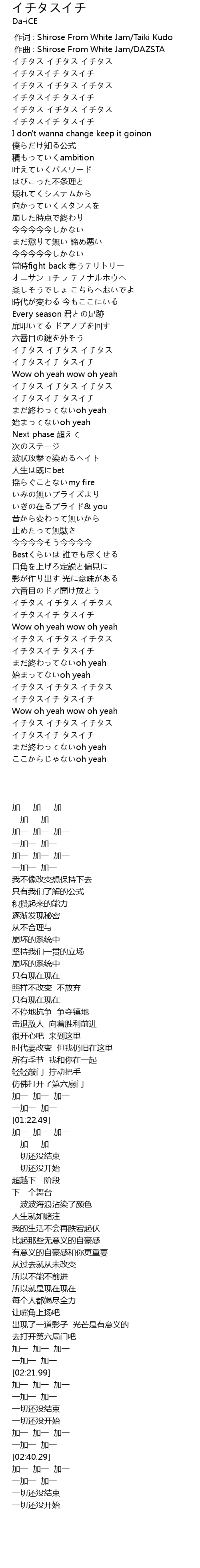 | [02:19.65] | イチタスイチ タスイチ |