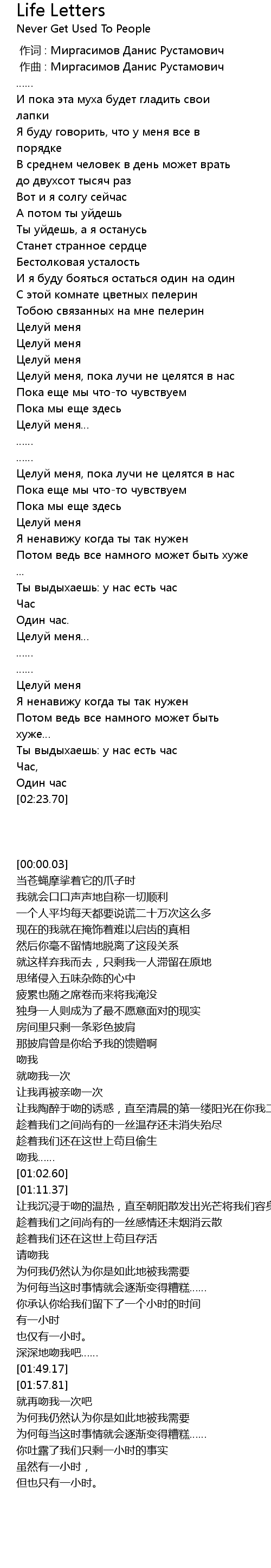 | [00:00.000] | 作词 : Миргасимов Данис Рустамович |