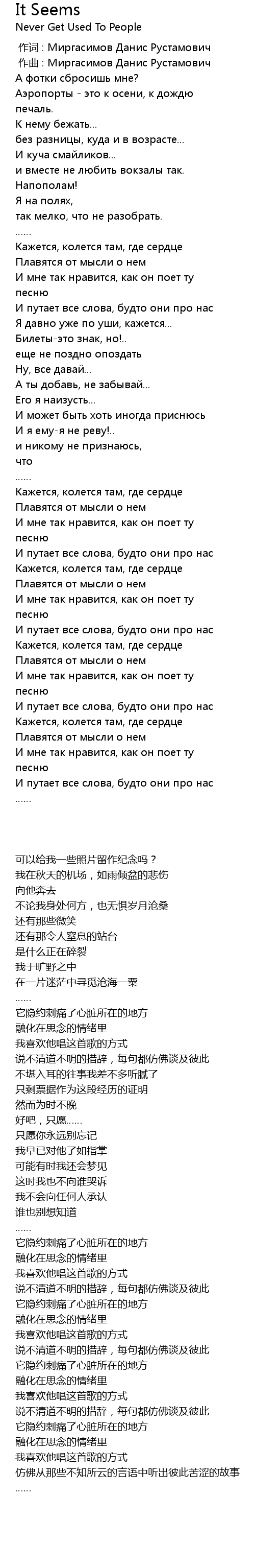 | [00:00.000] | 作词 : Миргасимов Данис Рустамович |