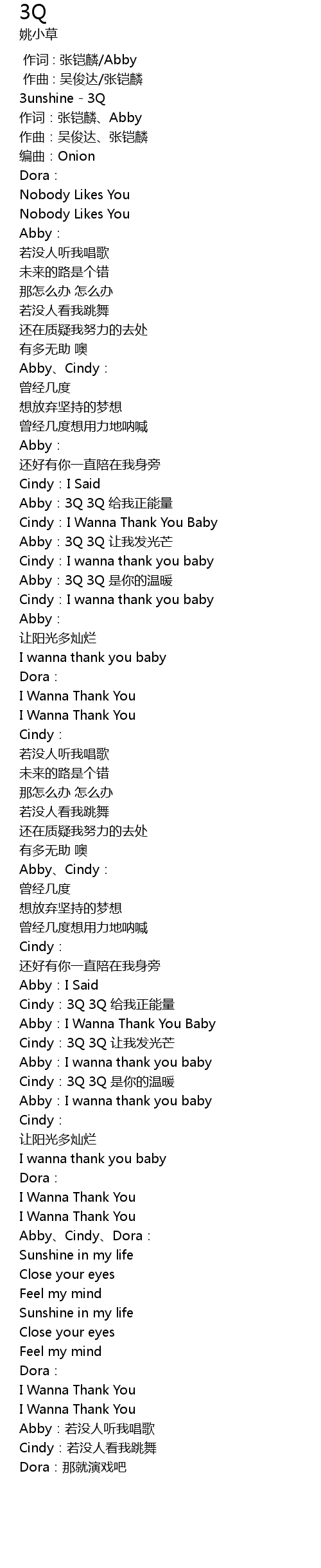 | [01:12.38] | Abby:3Q 3Q 让我发光芒 |