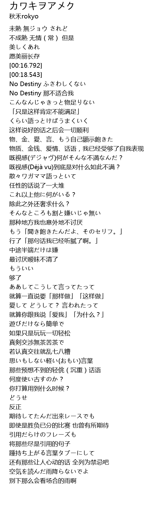 | [00:22.292] | No Destiny ふさわしくない |