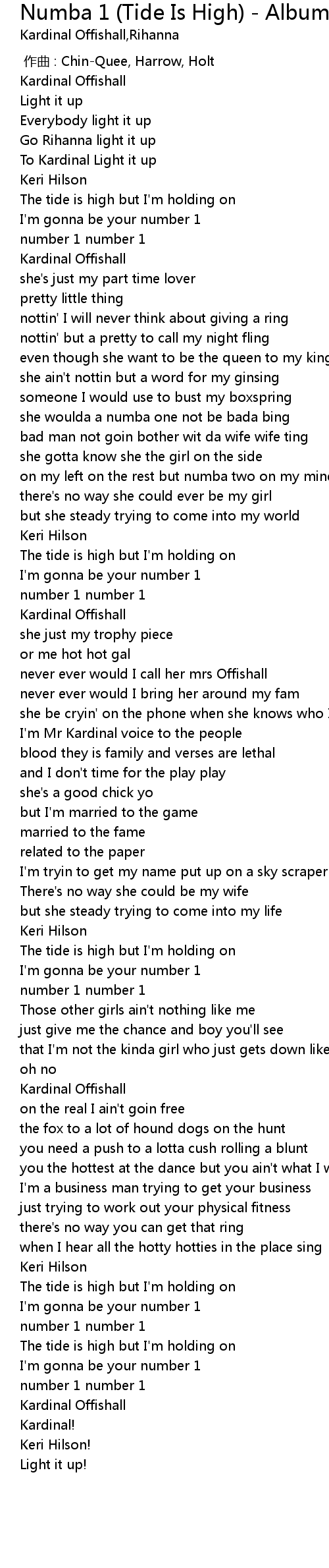 | 歌曲 | Numba 1 (Tide Is High) - Album Version (Explicit) |