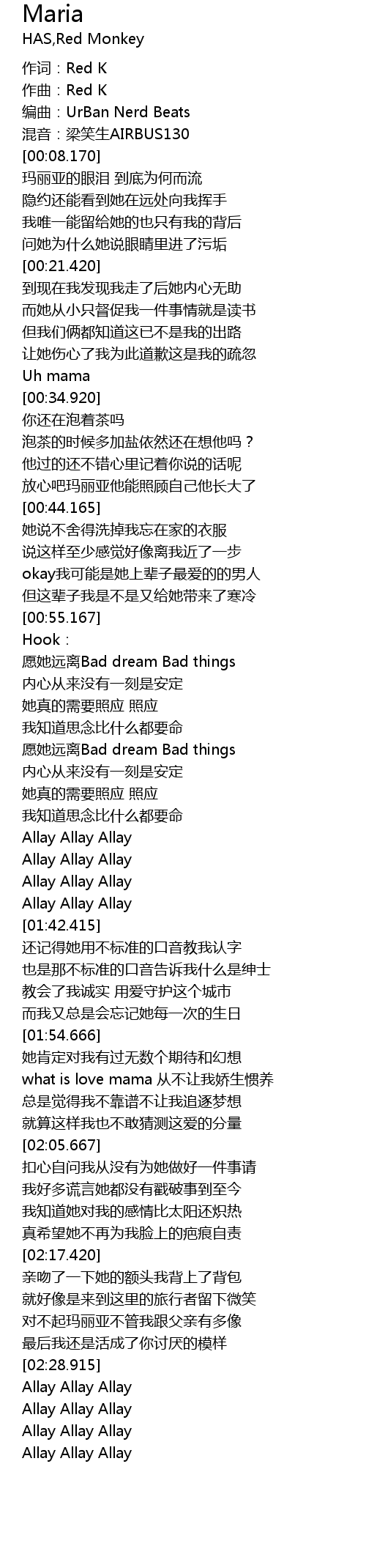 | [00:01.415] | 作词:Red K |
