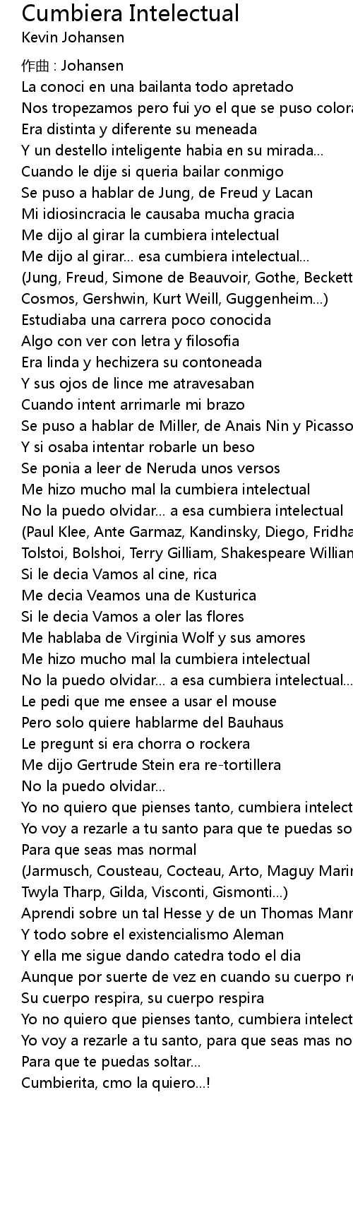 | Yo no quiero que pienses tanto, cumbiera intelectual! | |