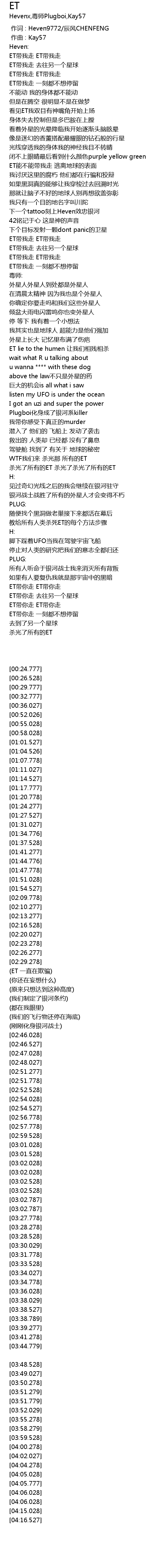 | [04:17.528] | 杀光了所有的ET |
