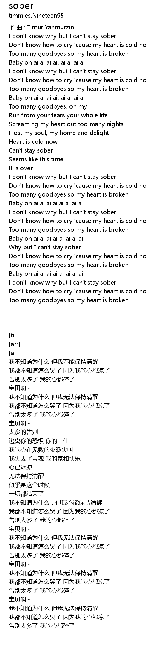 | [01:54.45] | I don' t know why but I can' t stay sober |