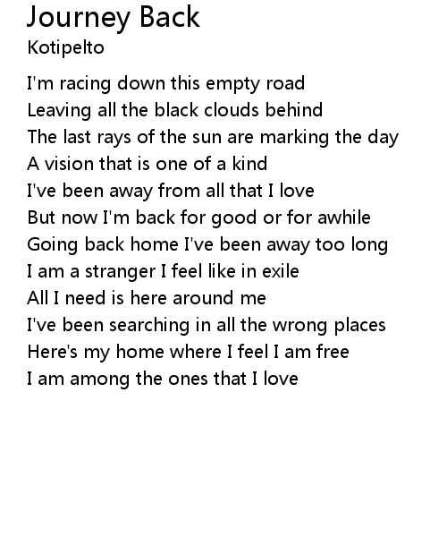 | Going back home I've been away too long | |