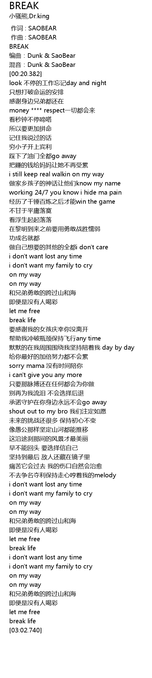 | [01:55.661] | shout out to my bro wǒ men zhù dìng rú yuàn |