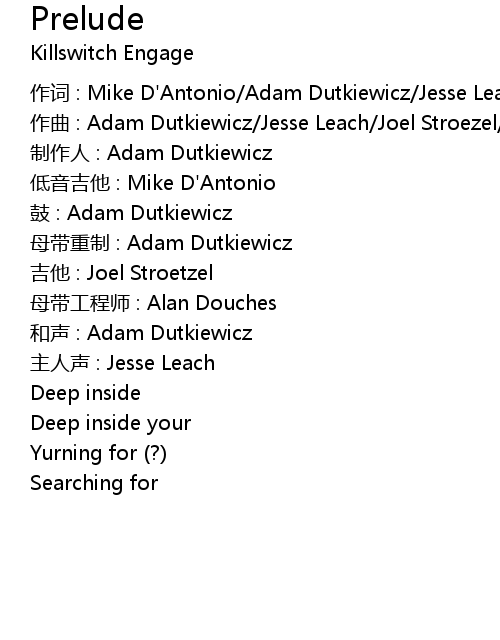 | 作词 : Mike D'Antonio/Adam Dutkiewicz/Jesse Leach/Joel Stroezel | |