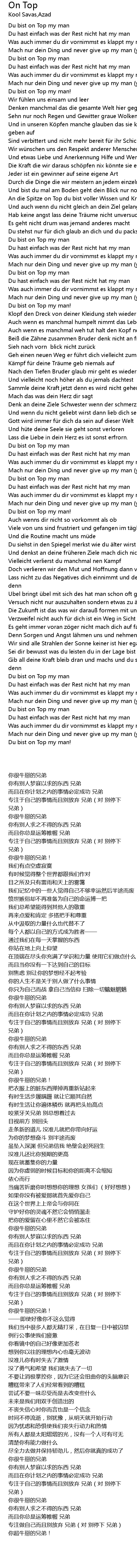 | [00:21.92] | Du bist on Top my man! |