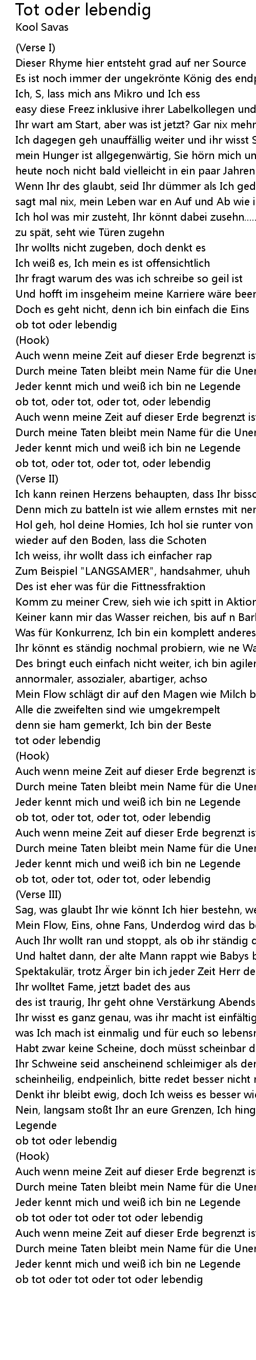 | 歌曲 | Tot oder lebendig |