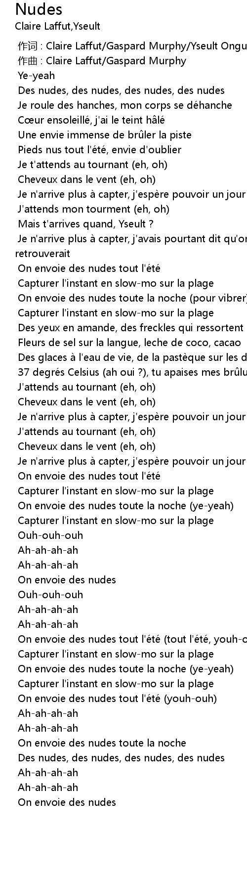 | [00:06.276] | Des nudes, des nudes, des nudes, des nudes |