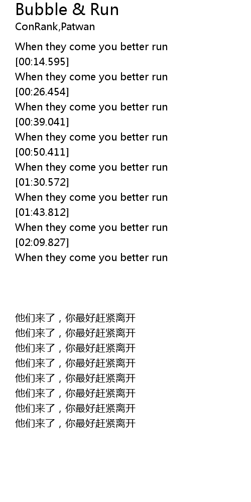 | [00:10.828] | When they come you better run |