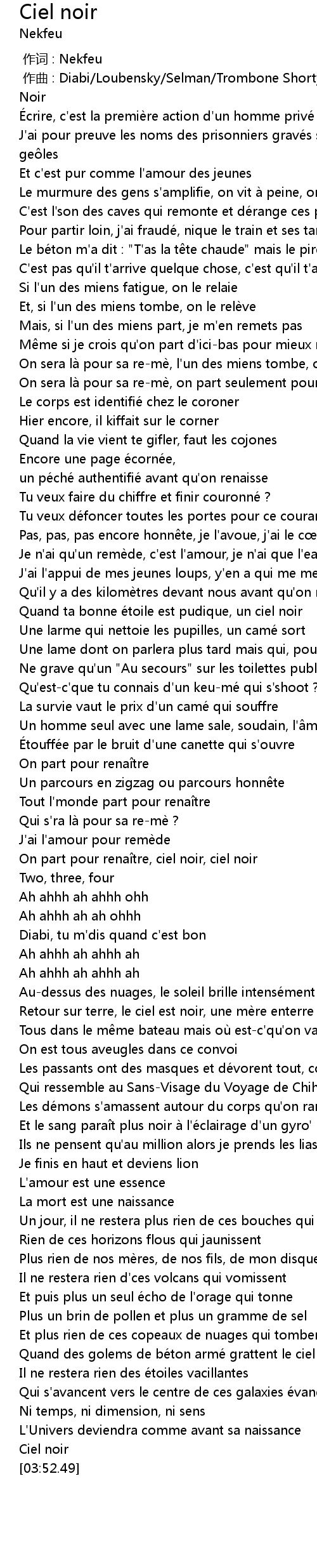 | [00:00.000] | 作词 : Nekfeu |