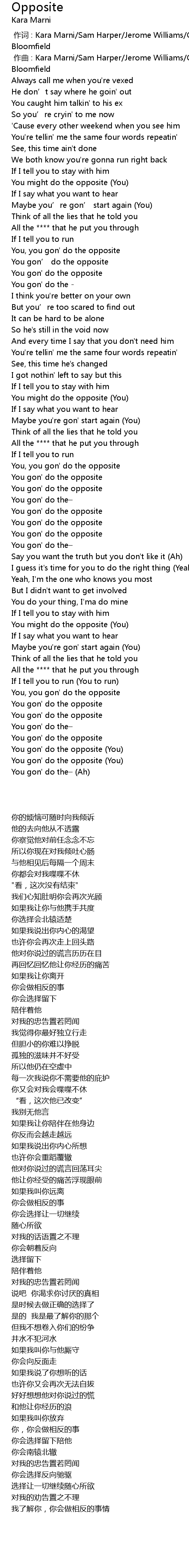 | 歌曲 | Opposite |