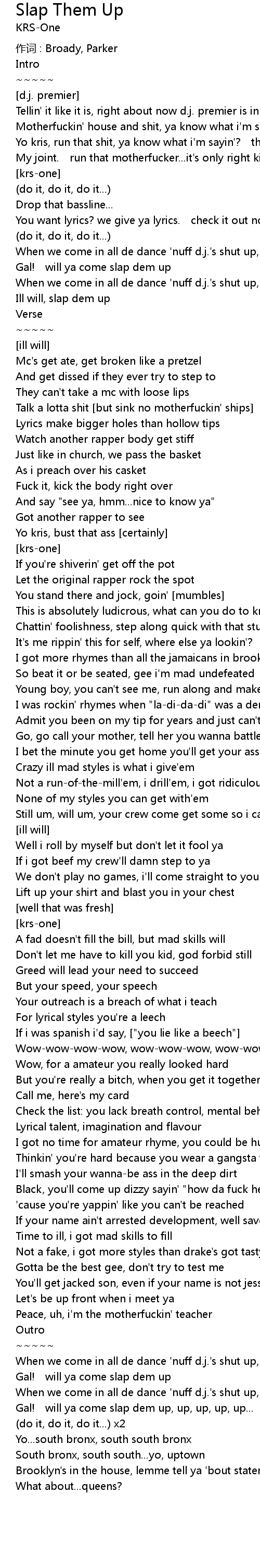 | Gal! will ya come slap dem up, up, up, up, up... | |