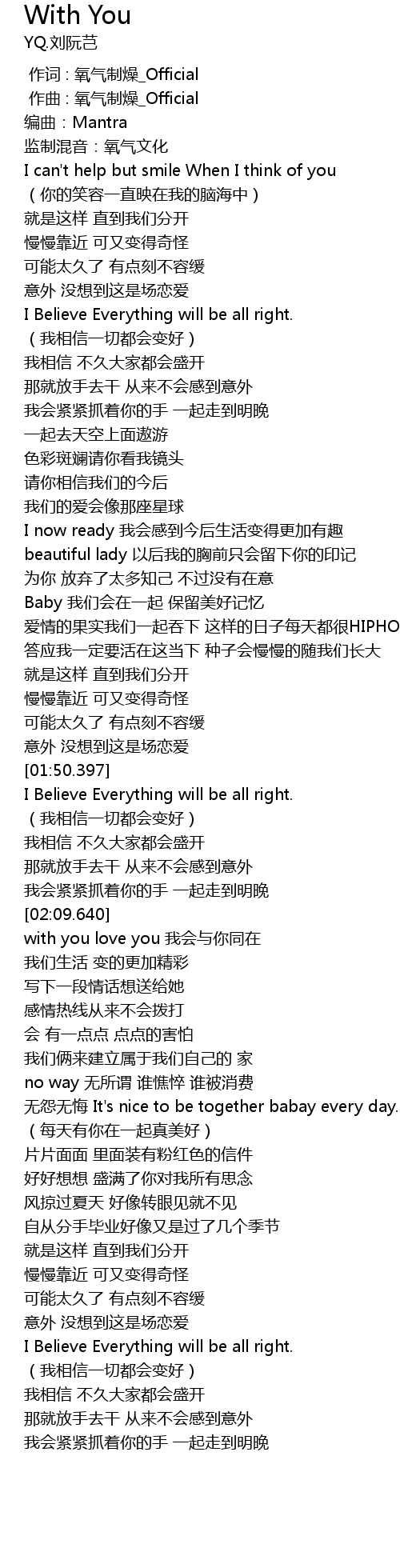 | [02:09.640] | with you love you wo hui yu ni tong zai |