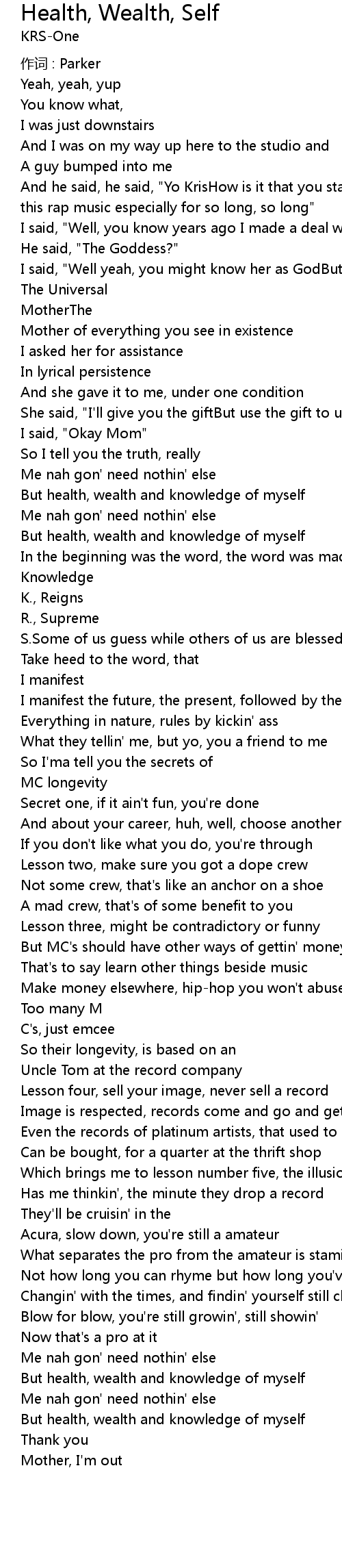| But health, wealth and knowledge of myself | |