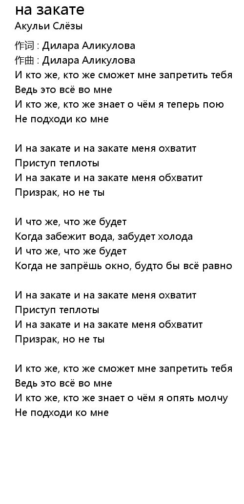 на закате 歌词