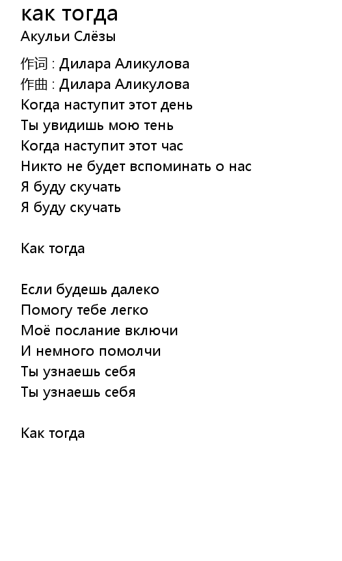 | 歌曲 | как тогда |