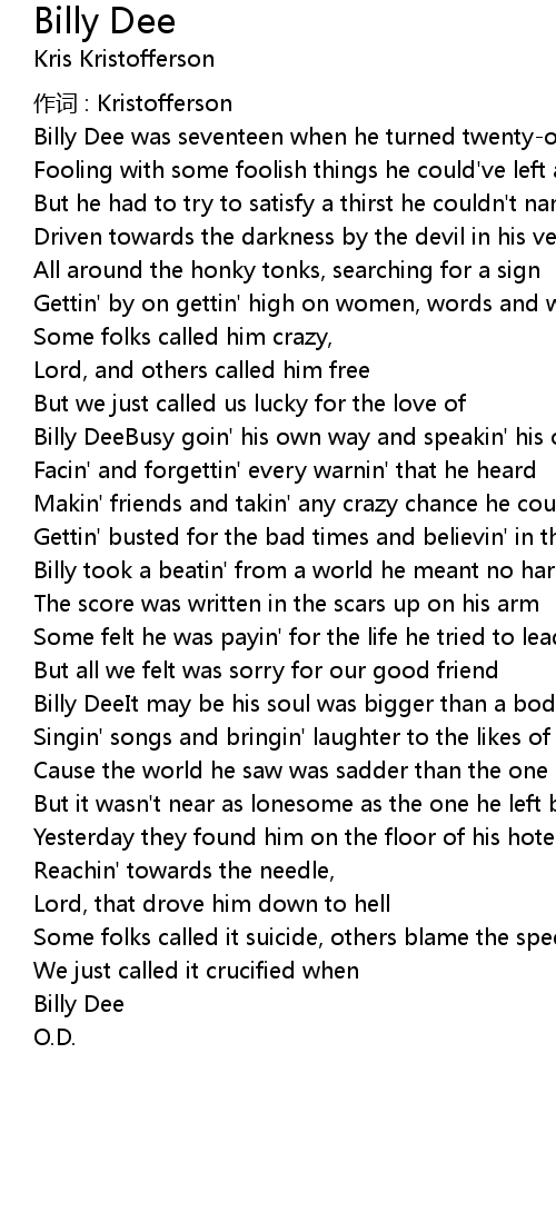 | Billy DeeIt may be his soul was bigger than a body's oughta be | |