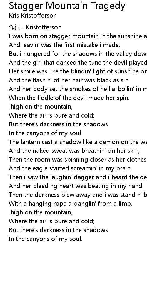 | Then i saw the laughin' dagger and i heard the devil scream | |