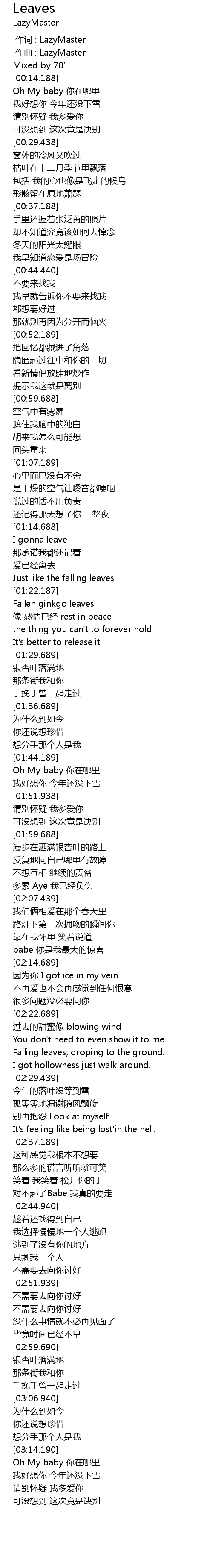 | [02:00.189] | 漫步在洒满银杏叶的路上 |