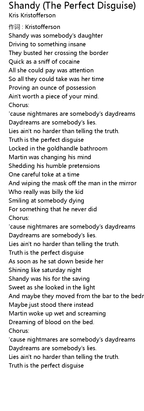 | 歌曲 | Shandy (The Perfect Disguise) |
