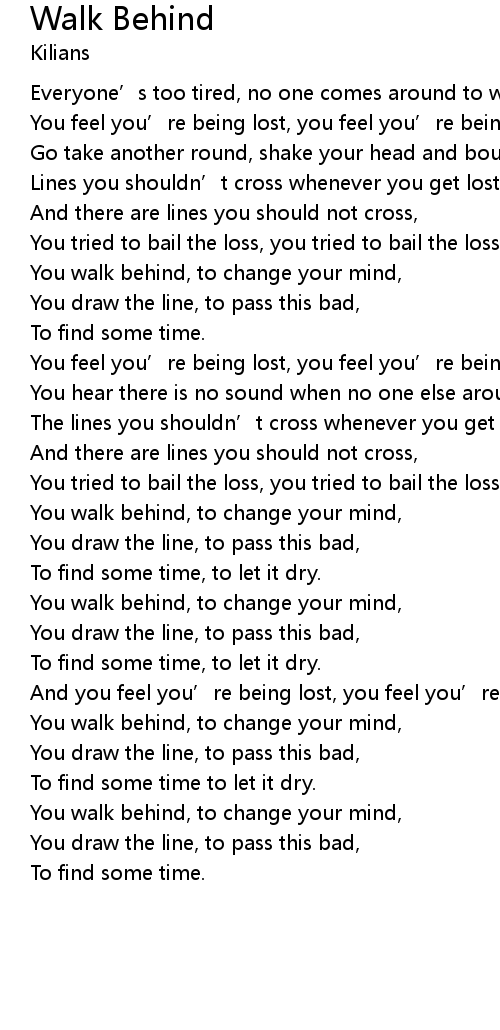 | 歌曲 | Walk Behind |