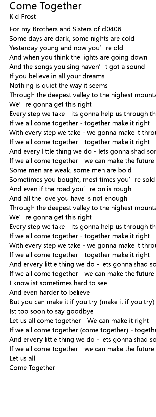 | [02:59.54] | If we all come together come together together make it right |