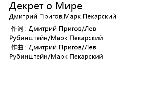 | [00:00.000] | 作词 : Дмитрий Пригов/Лев Рубинштейн/Марк Пекарский |
