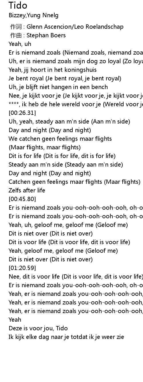 | [01:43.30] | Yeah, er is niemand zoals you-ooh-ooh-ooh-ooh, oh-oh |