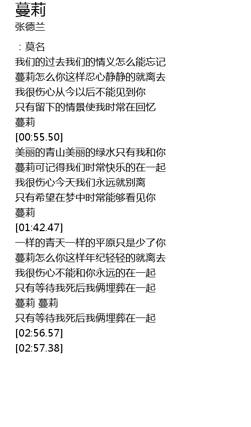 | [02:38.08] | 蔓莉 蔓莉 |