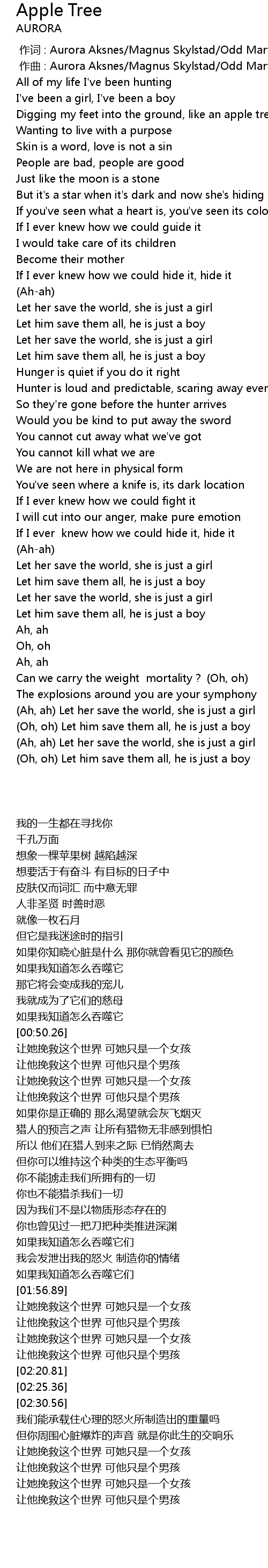 | [00:00.000] | 作词 : Aurora Aksnes/Magnus Skylstad/Odd Martin Skaalnes |