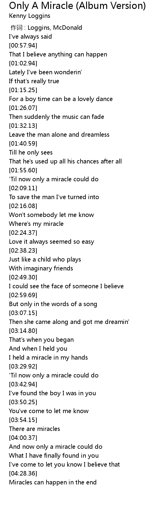 | 歌曲 | Only A Miracle (Album Version) |