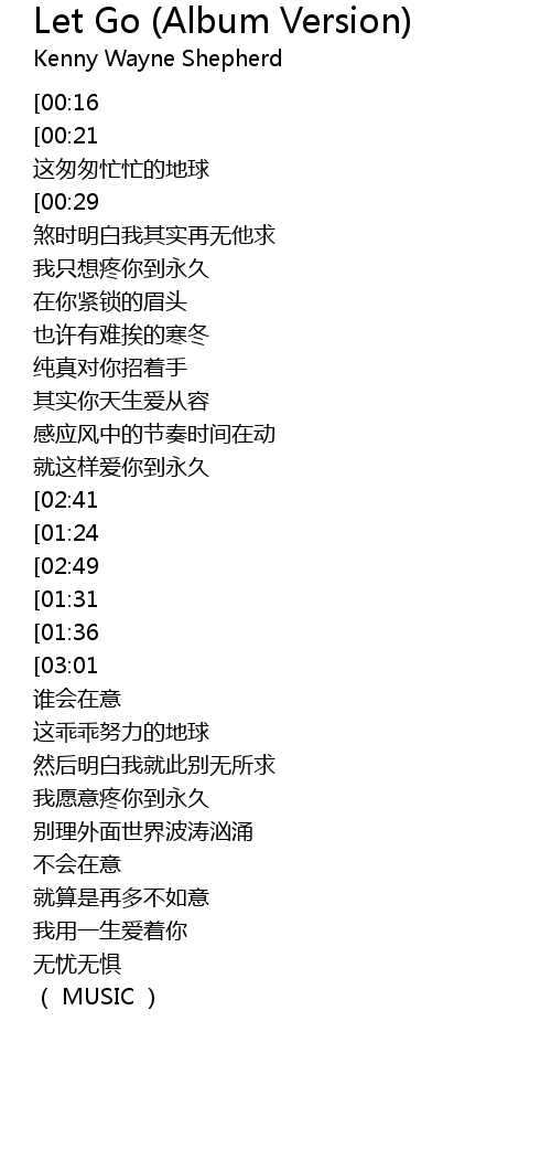| [00:40] | wǒ zhǐ xiǎng téng nǐ dào yǒng jiǔ |