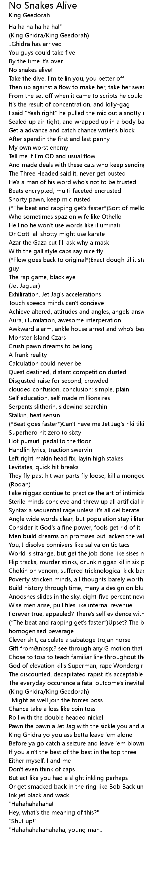 (*Beat goes faster*)Can't have me Jet Jag's riki tiki tavi |