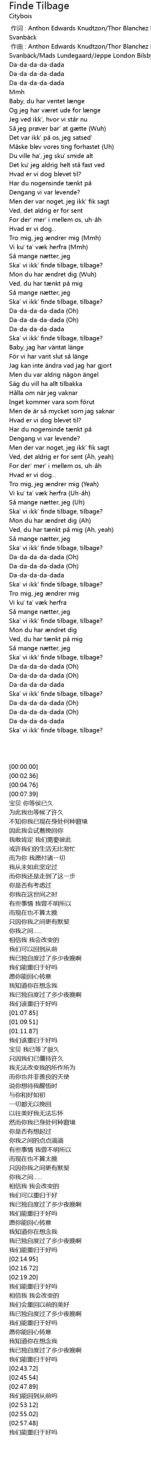 | [02:41.20] | Ska' vi ikk' finde tilbage, tilbage? |