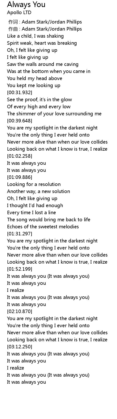 | [03:22.387] | It was always you It was always you |