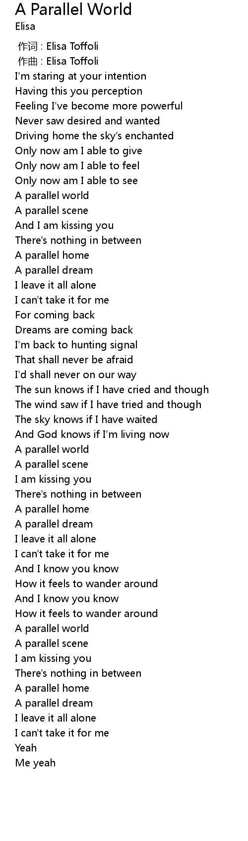 | [00:00.000] | 作词 : Elisa Toffoli |