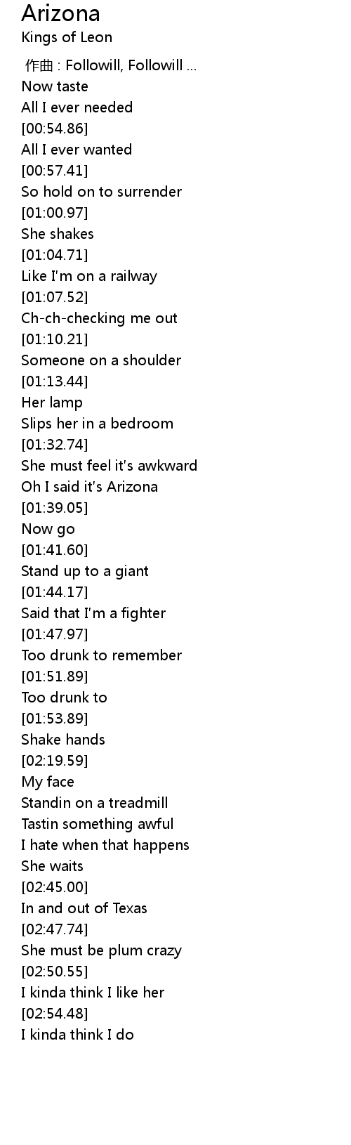 | [01:37.30] | Oh I said it′s Arizona |