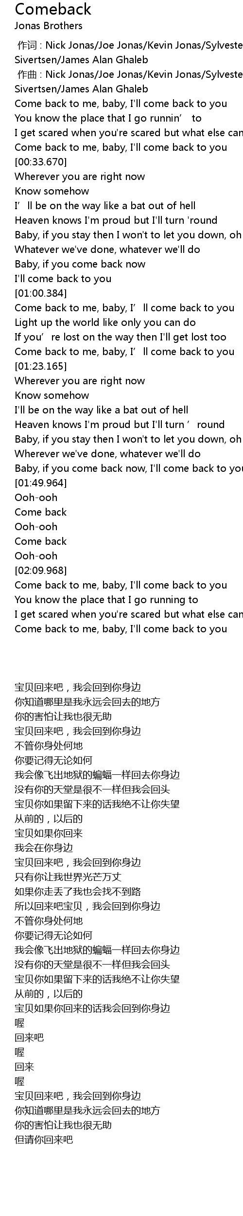 | [00:01.000] | zuò qǔ : Nick Jonas Joe Jonas Kevin Jonas Sylvester Willy Sivertsen James Alan Ghaleb |