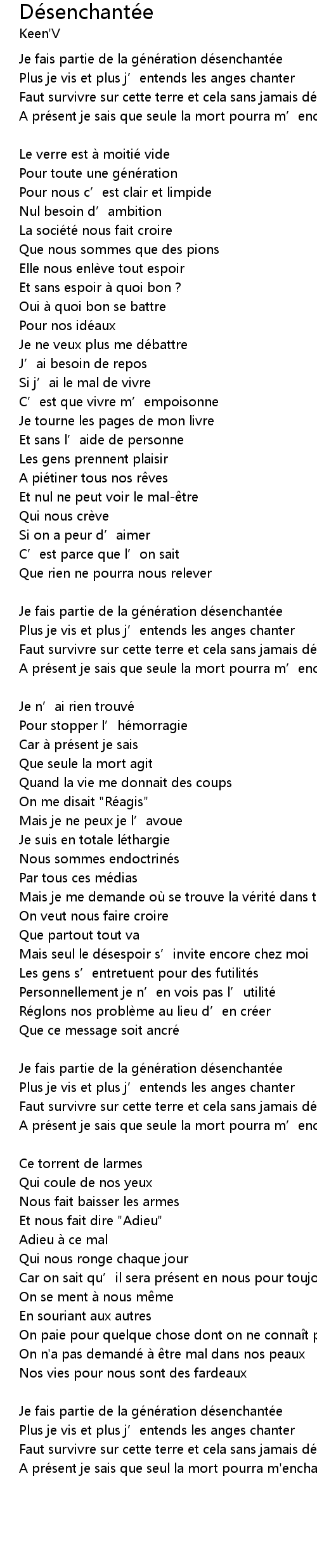 | Je fais partie de la gé né ration dé senchanté e | |