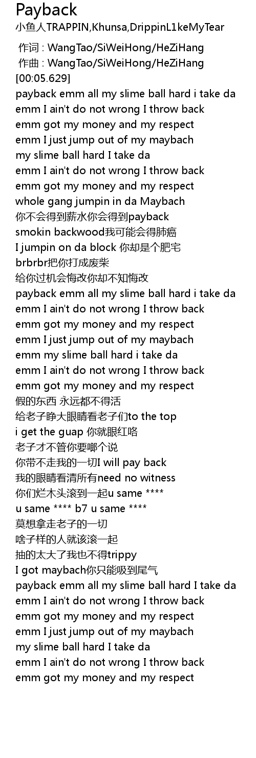 | [00:11.559] | payback emm all my slime ball hard i take da |