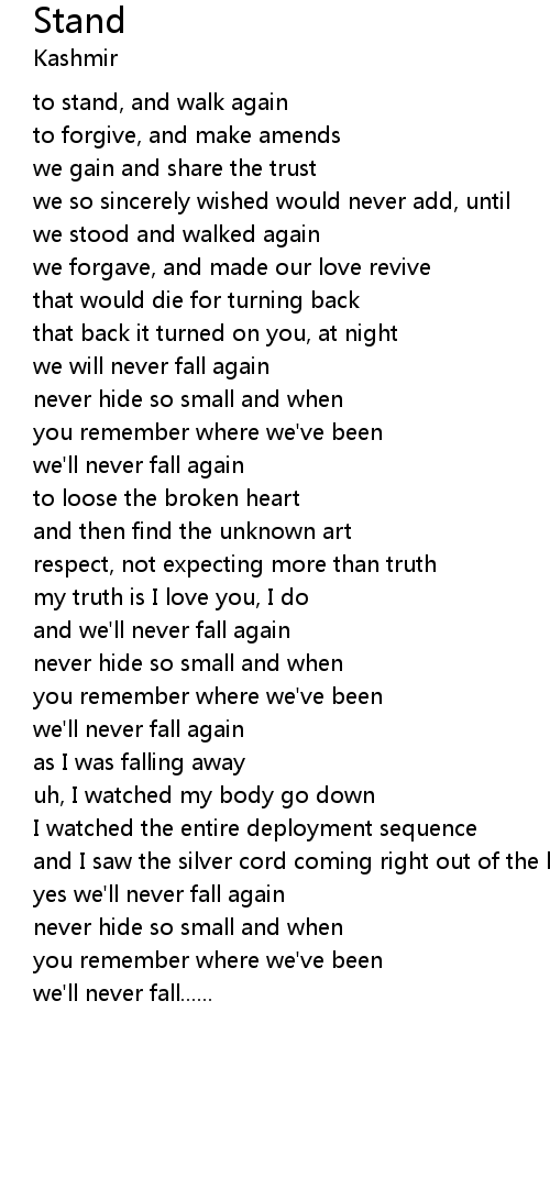 and we'll never fall again |
