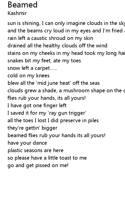 and the beams cry loud in my eyes and I'm fried as I lay me down I am beamed |