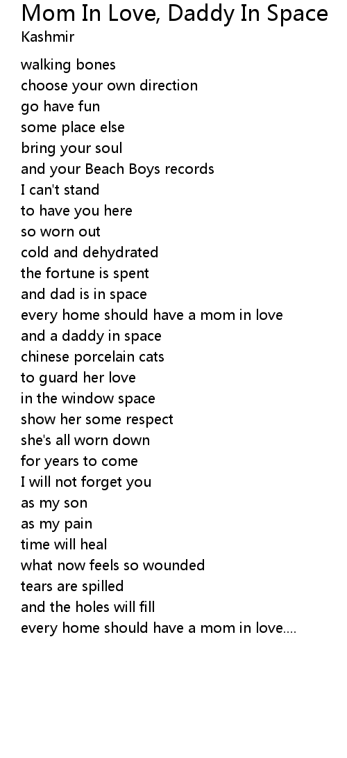 歌曲 Mom In Love, Daddy In Space