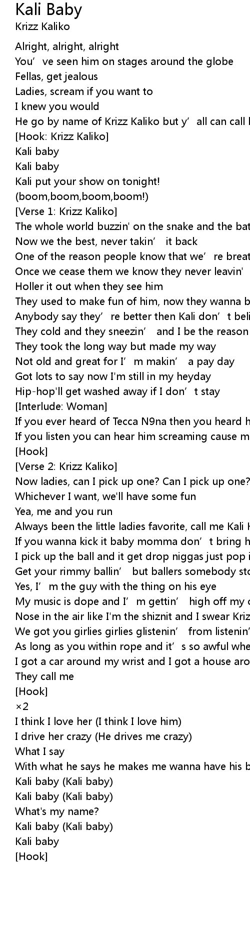| He go by name of Krizz Kaliko but y' all can call him Kalibaby | |