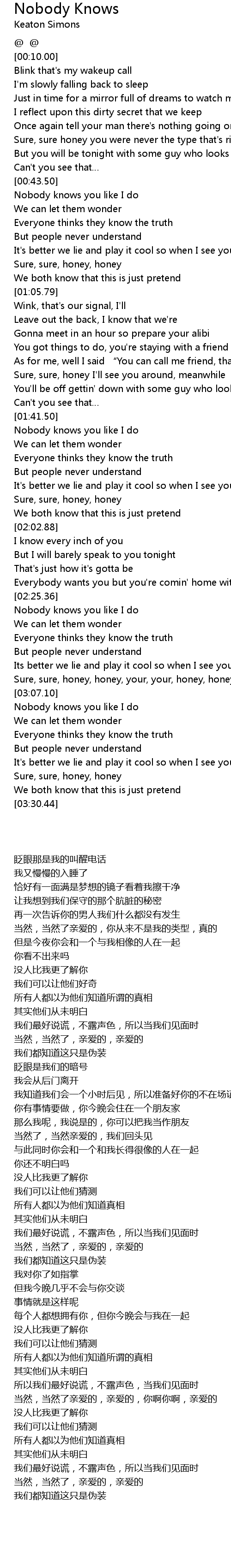 | [00:54.36] | It's better we lie and play it cool so when I see you it's just |