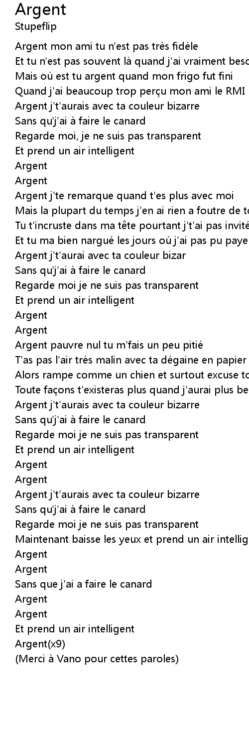 | Argent pauvre nul tu m' fais un peu pitié | |